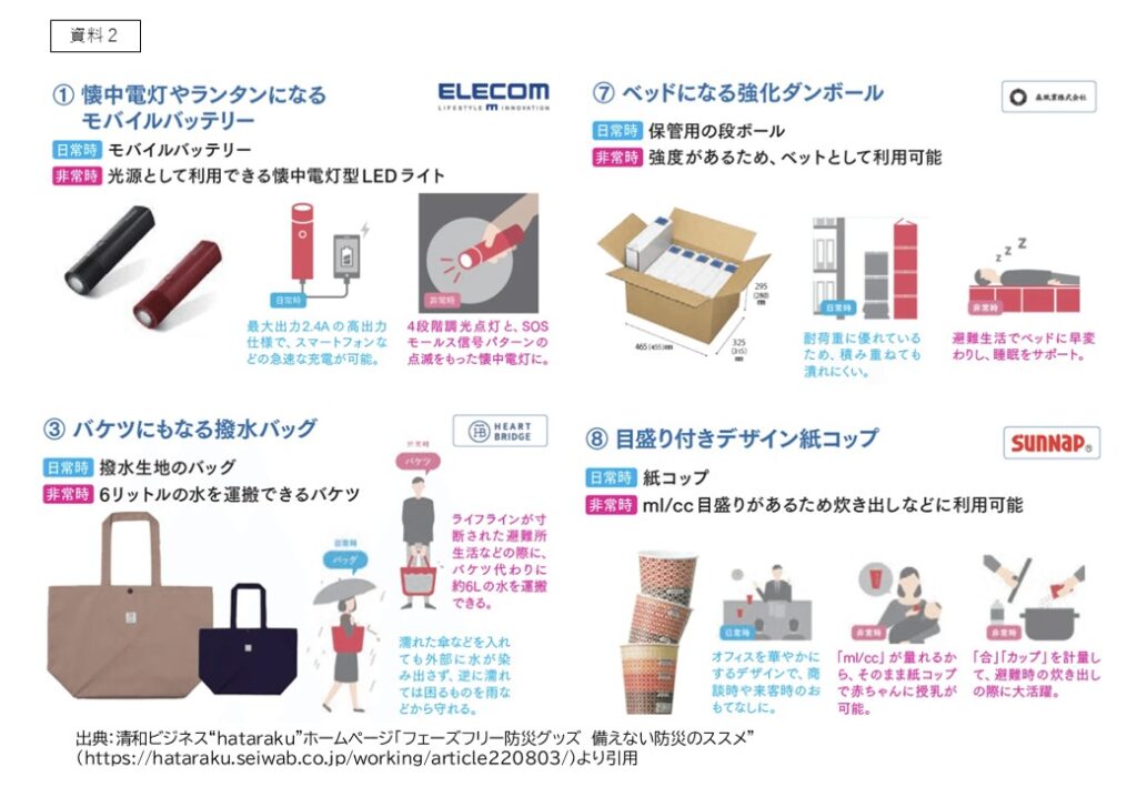 また、事務用品においても様々なフェーズフリー防災用品を販売しております。その一例を示します。